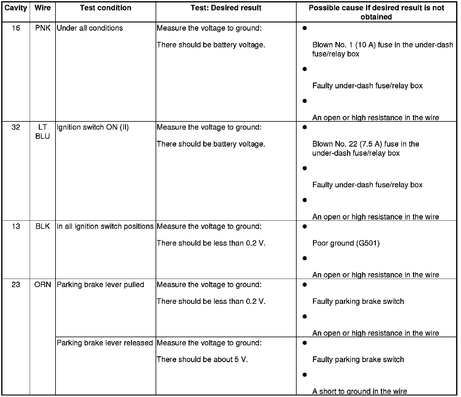 Instrument Panel, Gauges and Warning Indicators: Testing and Inspection