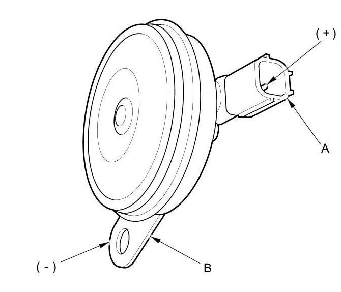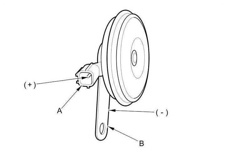 3. Connect the terminal (A) to battery power, and the bracket (B) to body ground.