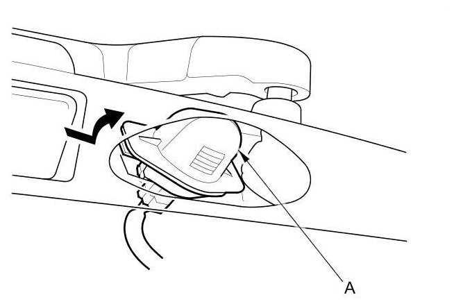 1. Push the license plate light (A) to the side to release the retaining spring, and pull out the license plate light.