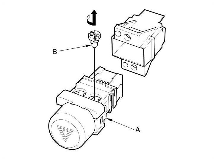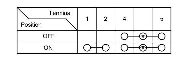 4. If the continuity is not as specified for terminals 1 and 2, replace the switch (A). If the continuity is not as specified for terminals 4 and 5, replace the bulb (B).