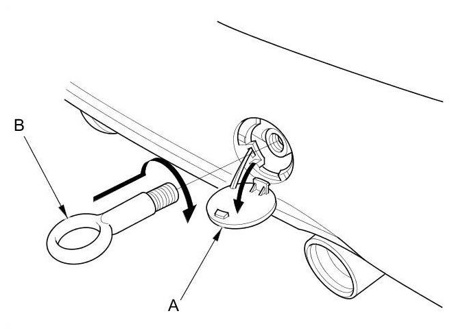 3. Screw in the detachable towing hook (B), and tighten it securely by hand.