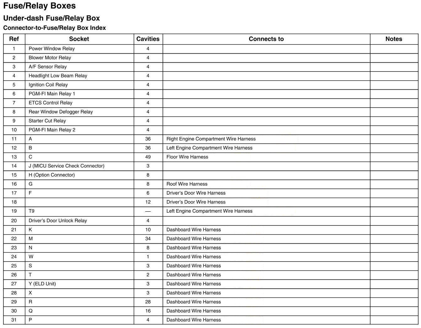 Under-Dash Fuse/Relay Box - Connector-to-Fuse/Relay Box Index