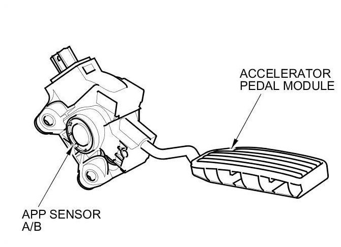 Acceleration control: When the accelerator pedal is pressed, the ECM/PCM opens the throttle valve depending on the accelerator pedal position (APP) sensor signal.