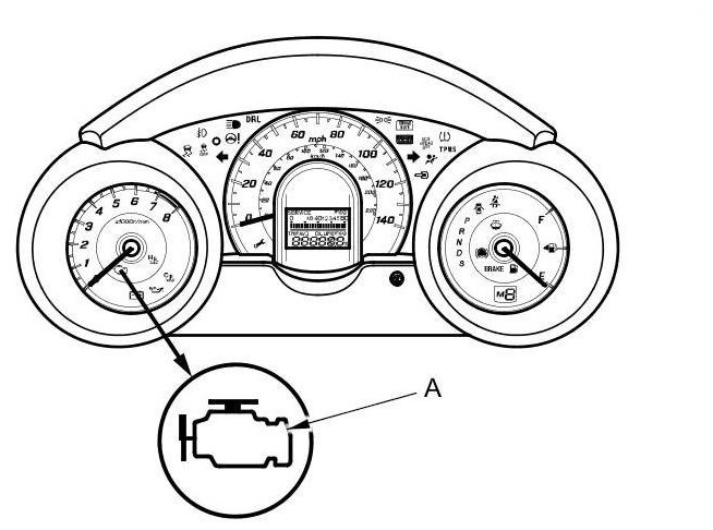 2. If the MIL stays on, connect the HDS to the data link connector (DLC) (A) located under the driver's side of the dashboard.