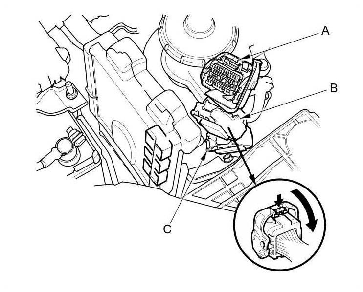 2. Disconnect ECM/PCM connectors A, B, and C.