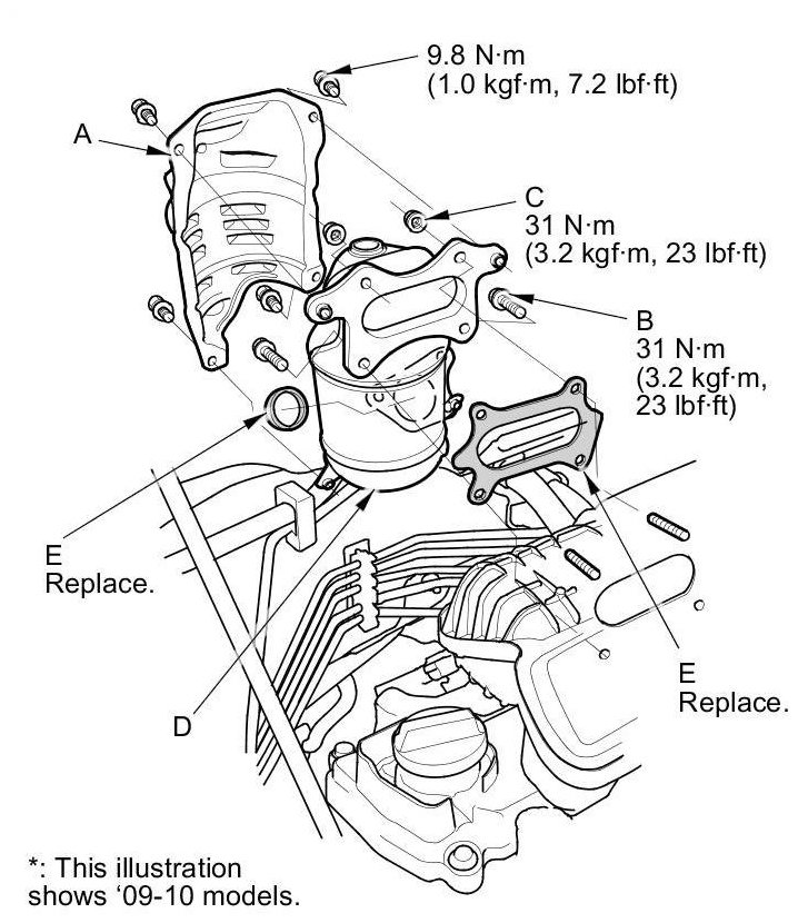 9. Install the parts in the reverse order of removal with new gaskets (E).