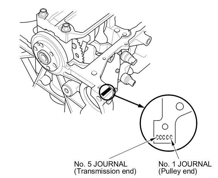 Letters have been stamped on the end of the engine block as a code for the size of each of the five main journal bores.