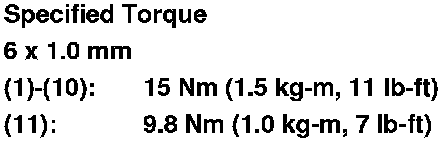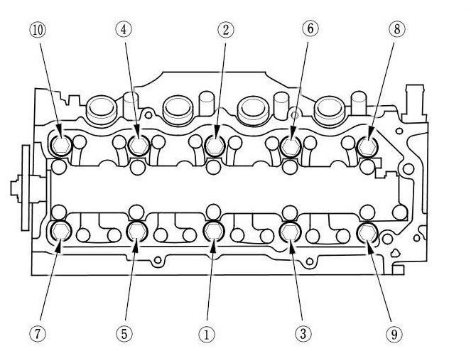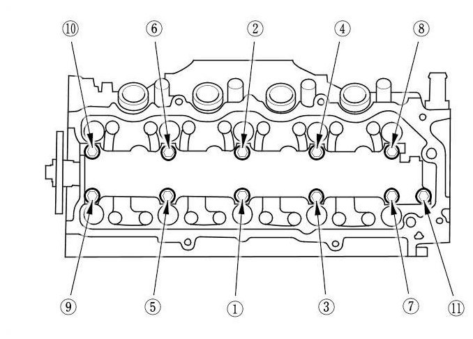 Torque the cylinder head bolts in sequence to 29 Nm (3.0 kg-m, 22 lb-ft)