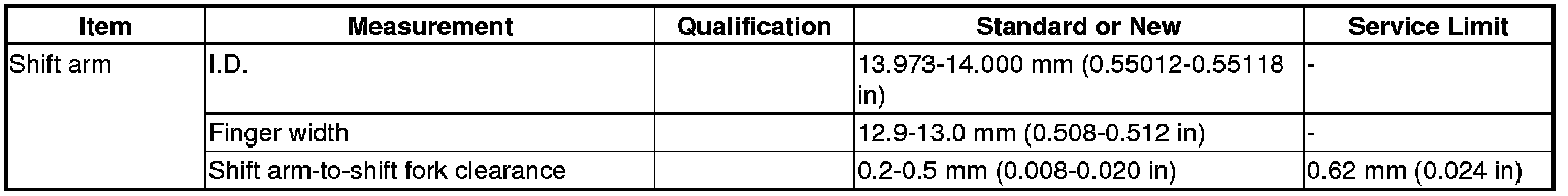Shift Arm Specification(s) (M/T)