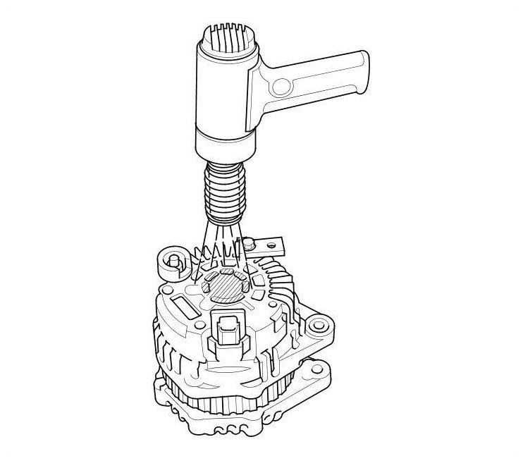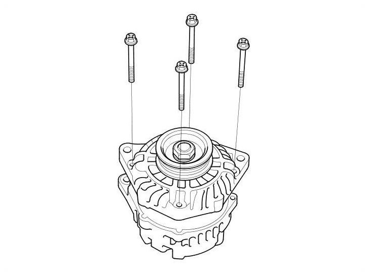 33. After assembling the alternator, turn the pulley by hand to make sure the rotor turns smoothly and without noise.