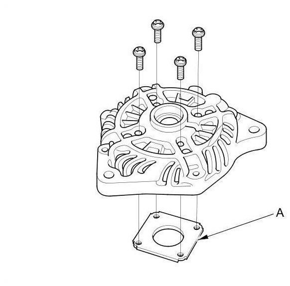 27. Install the voltage regulator/brush holder assembly and the rectifier on the rear housing.