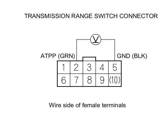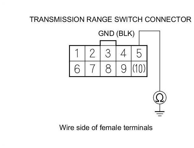 19. Check for continuity between transmission range switch connector terminal No. 5 and body ground.