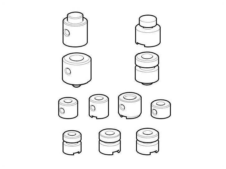 2. Install the valves and springs in the sequence shown for the main valve body Main Valve Body Disassembly, Inspection, And Reassembly, the regulator valve body Regulator Valve Body Disassembly, Inspection, And Reassembly, and the servo body Servo Body Disassembly, Inspection, And Reassembly. Refer to the following valve cap illustrations, and install each valve cap so the end shown facing up will be facing the outside of the valve body, then secure the valve cap with the valve cap clip.
