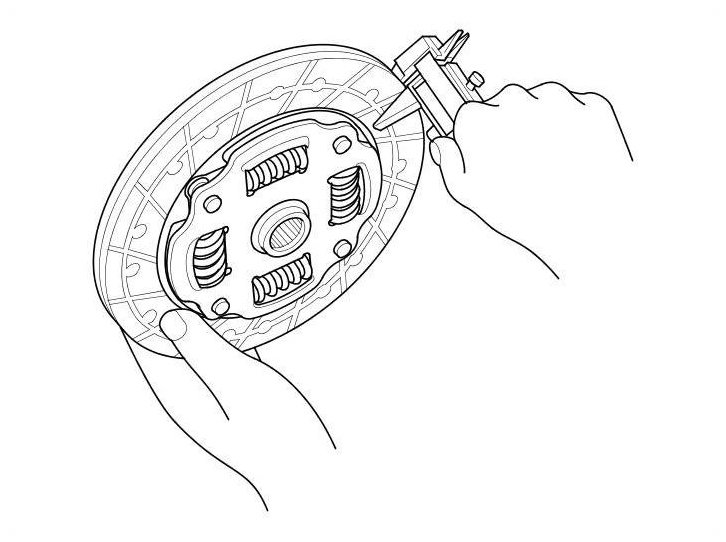 10. Measure the clutch disc thickness. If the measurement is less than the service limit, replace the clutch disc.
