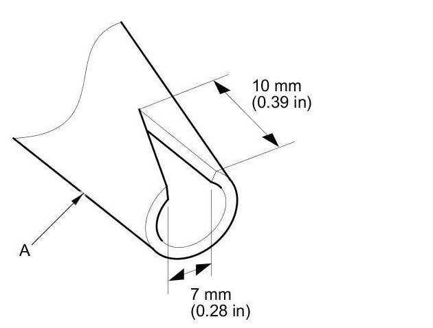 16. Cut a "V" in the end of the nozzle (A) on the adhesive cartridge as shown.