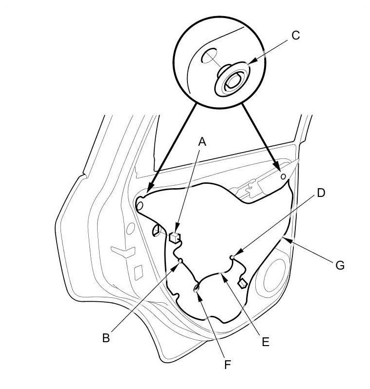 - When reinstalling the door panel, make sure the plastic cover is installed properly and sealed around its outside perimeter to seal out water.
