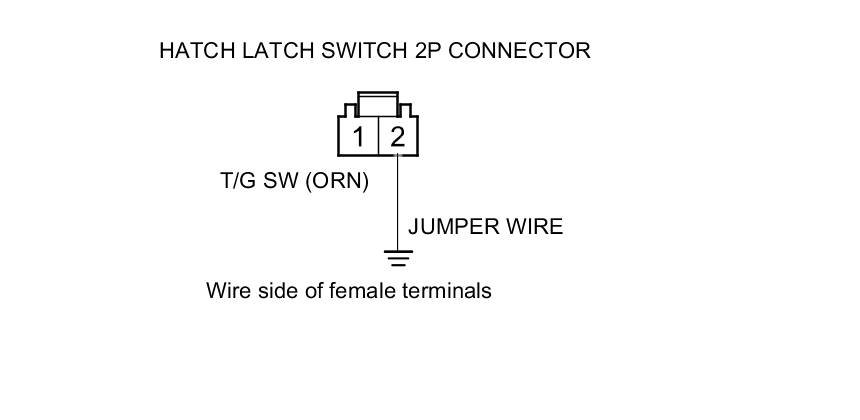 9. Connect hatch latch switch 2P connector terminal No. 2 and body ground with a jumper wire.