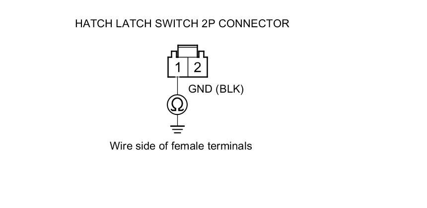 11. Check for continuity between hatch latch switch 2P connector terminal No. 1 and body ground.