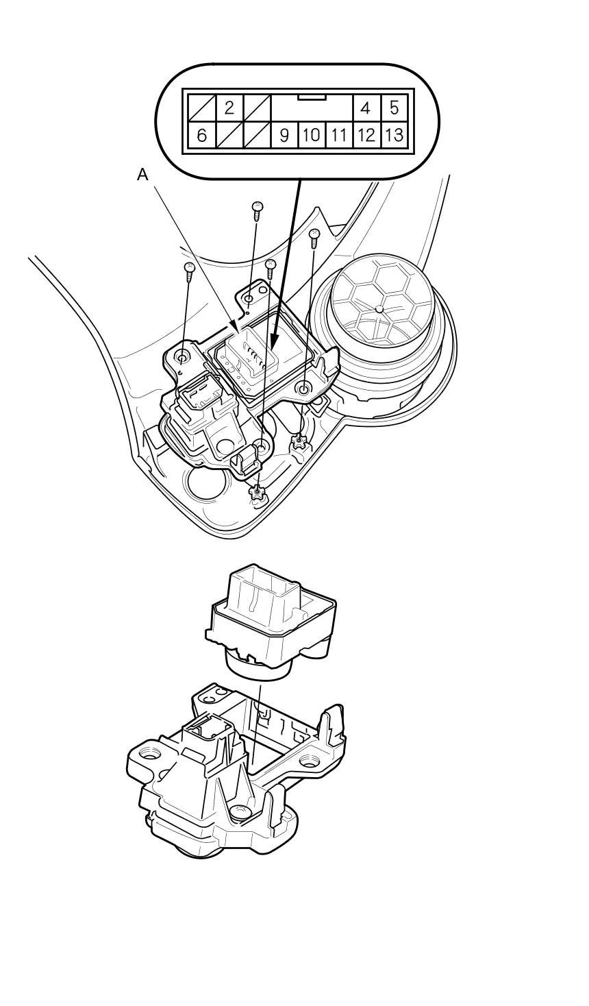 2. Disconnect the 13P connector from the power mirror switch (A).