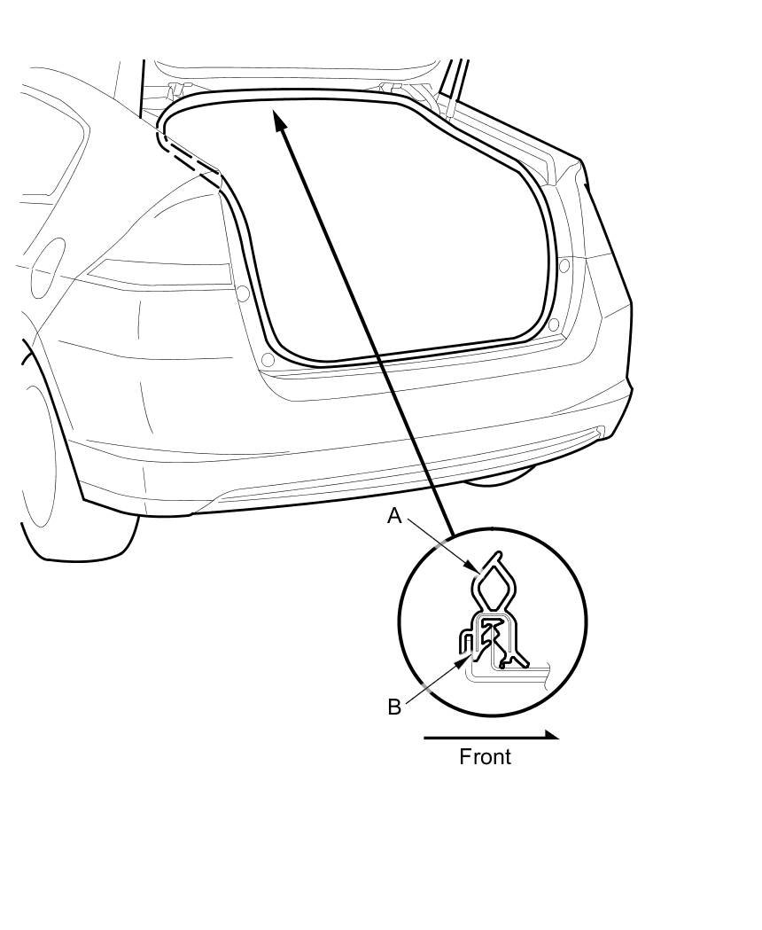 1. Remove the hatch weatherstrip (A) by pulling it out.