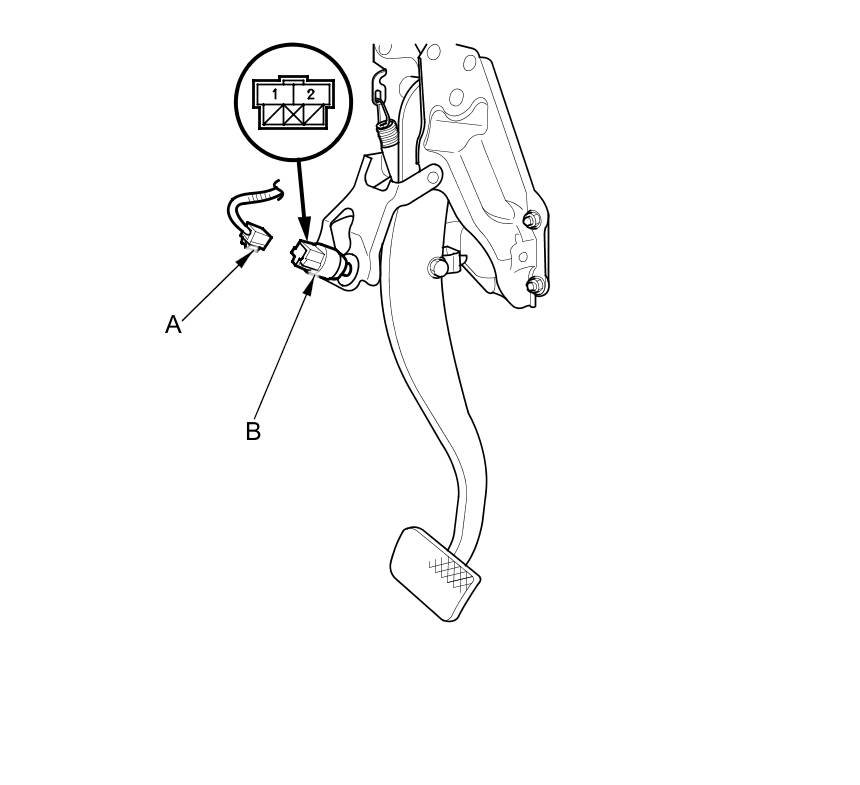 1. Disconnect the 4P connector (A) from the brake pedal position switch (B).
