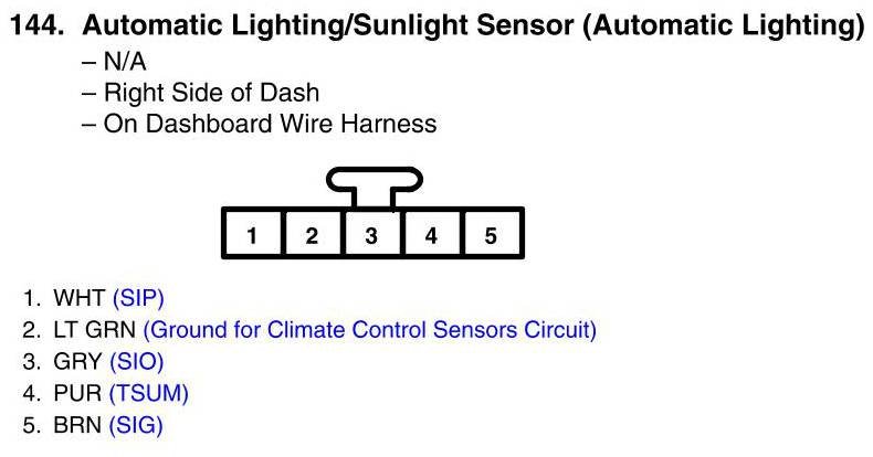 Automatic Lighting/Sunlight Sensor Connector View (Automatic Lighting)