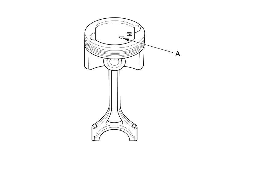 3. Position the piston/connecting rod assembly with the arrow (A) facing the cam chain side of the engine block.