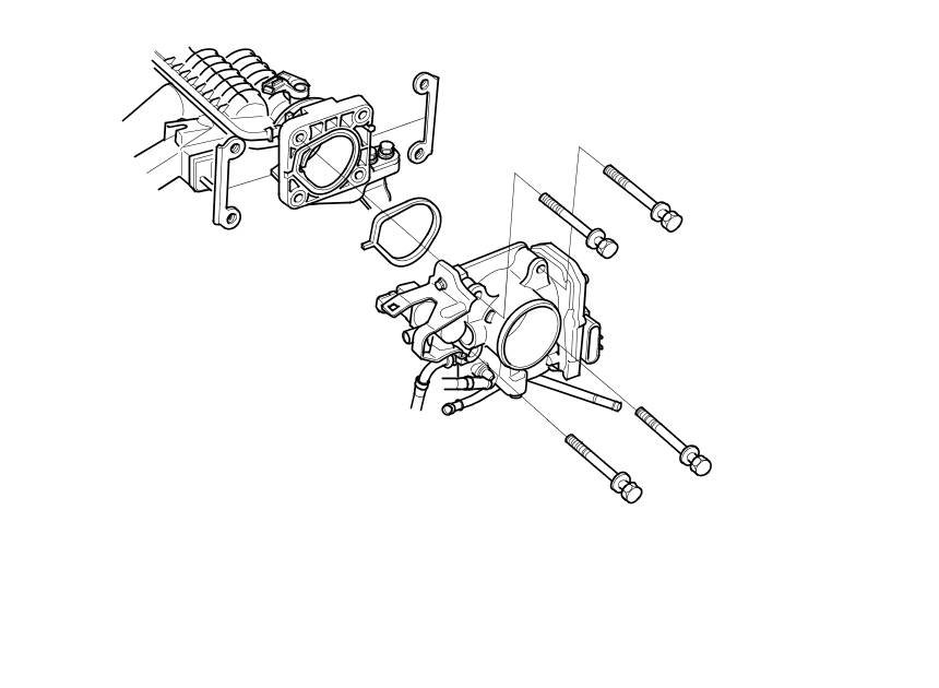 6. Remove the throttle body without disconnecting the water bypass hoses.
