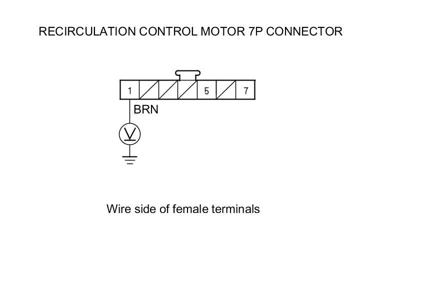 4. Measure the voltage between recirculation control motor 7P connector terminal No. 1 and body ground.
