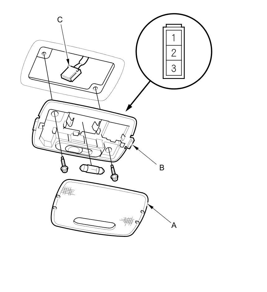 4. Disconnect the 3P connector (C) from the ceiling light.