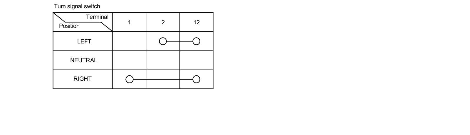 - If the terminals look OK, check for continuity between the terminals in each switch position according to the tables.