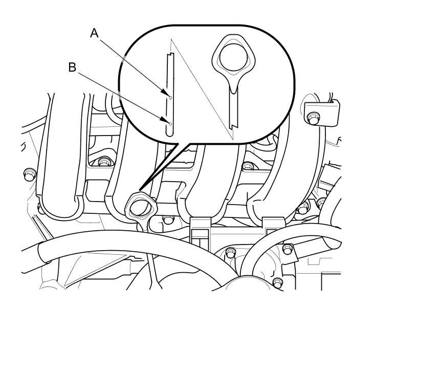 3. Remove the dipstick, and check the engine oil level. It should be between the upper mark (A) and lower mark (B).