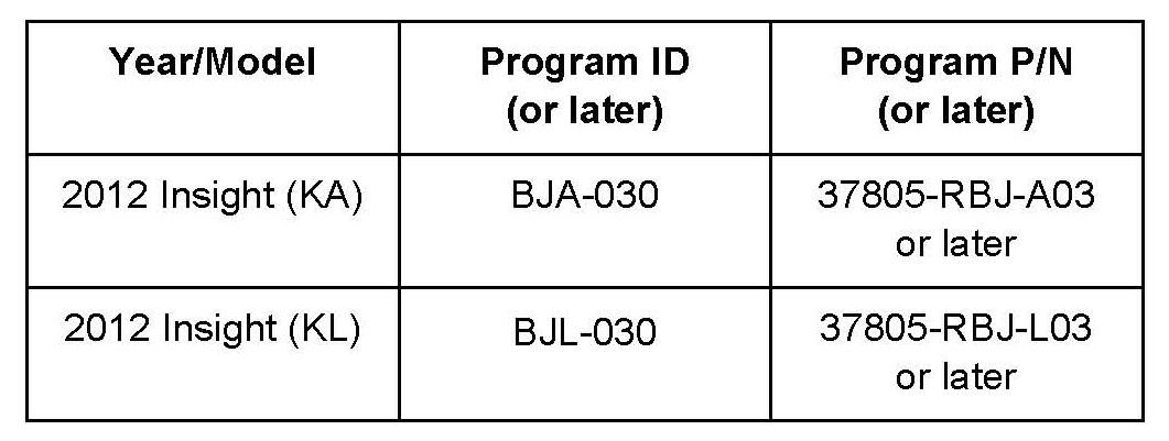 The updated PCM-CVT software program IDs and P/Ns are shown below. If the HDS is loaded with the latest software, and it displays No Update Needed during the update, the software for this service bulletin is already installed.