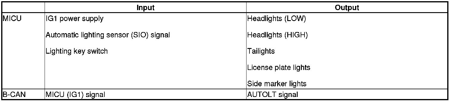 The MICU controls the automatic lighting system based on inputs from the automatic lighting sensor.