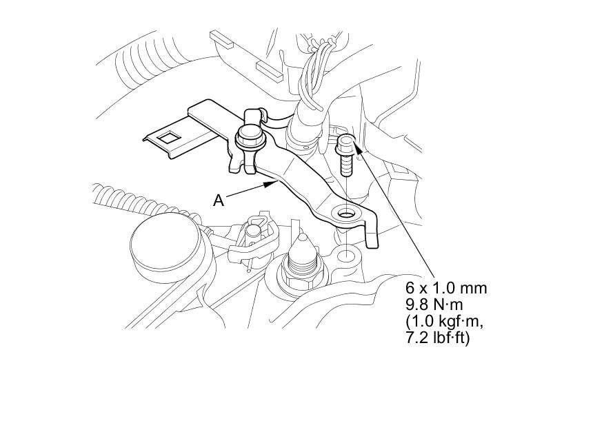5. Remove the ground terminal bracket (A) from the transmission mount (B).