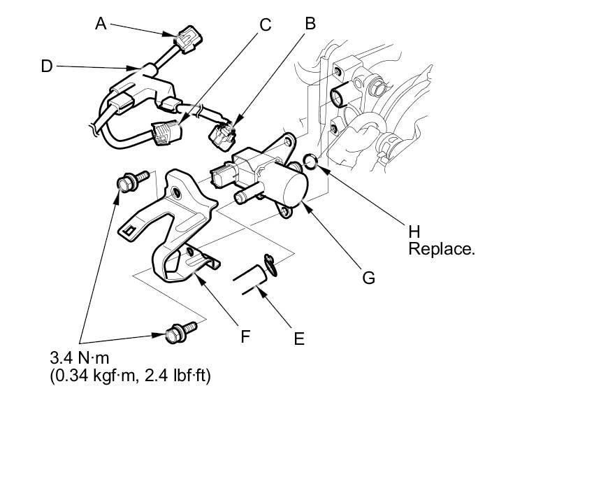 3. Install the parts in the reverse order of removal with a new O-ring (H).