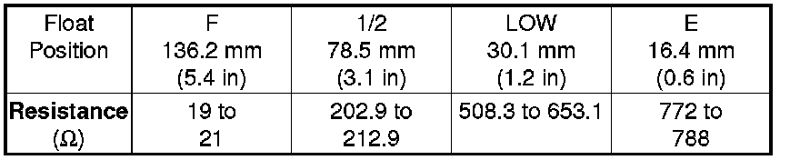 If you do not get the following readings, replace the fuel gauge sending unit Fuel Pump/Fuel Gauge Sending Unit Replacement.