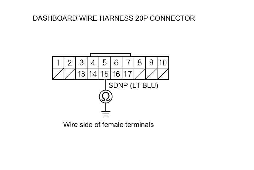 7. Check for continuity between dashboard wire harness 20P connector terminal No. 15 and body ground.