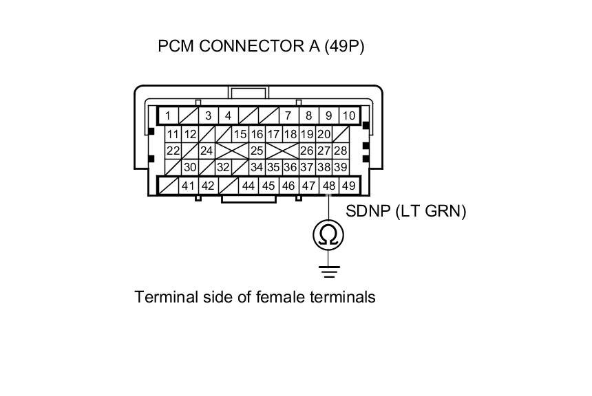 13. Check for continuity between PCM connector terminal A48 and body ground.