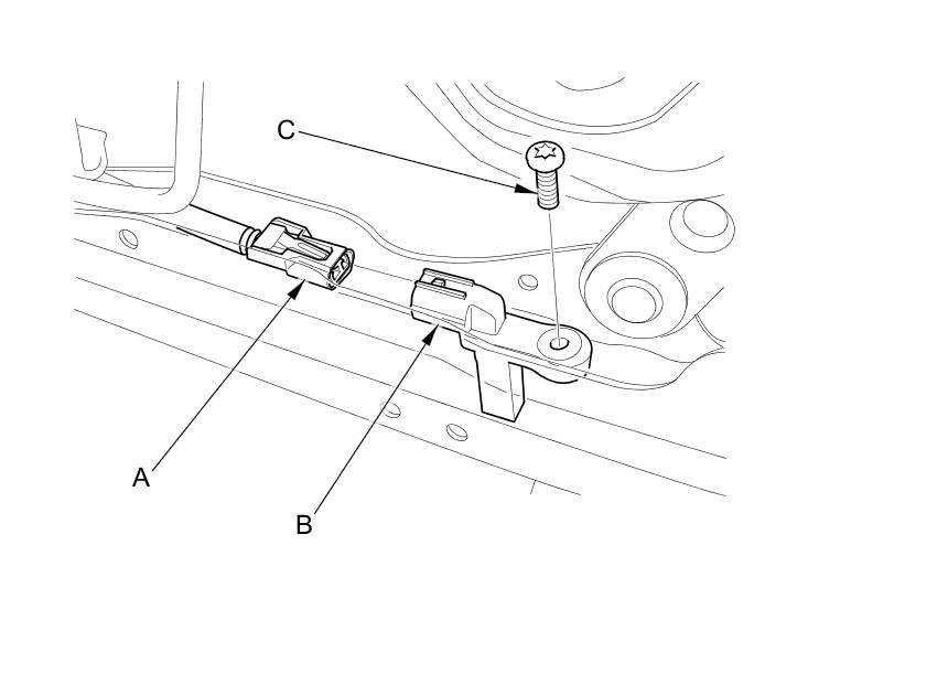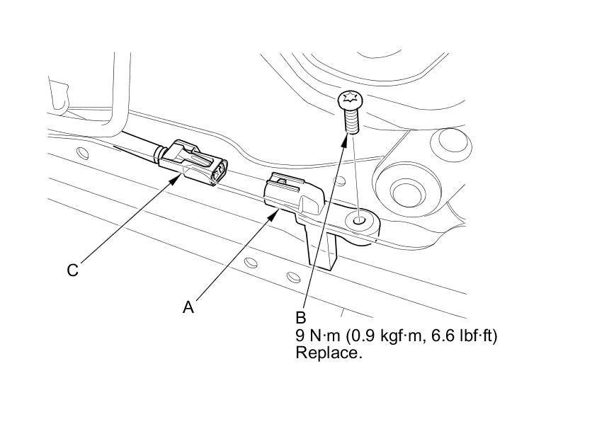 5. Remove the TORX bolt (C) using a TORX T30 bit, then remove the driver's seat position sensor.