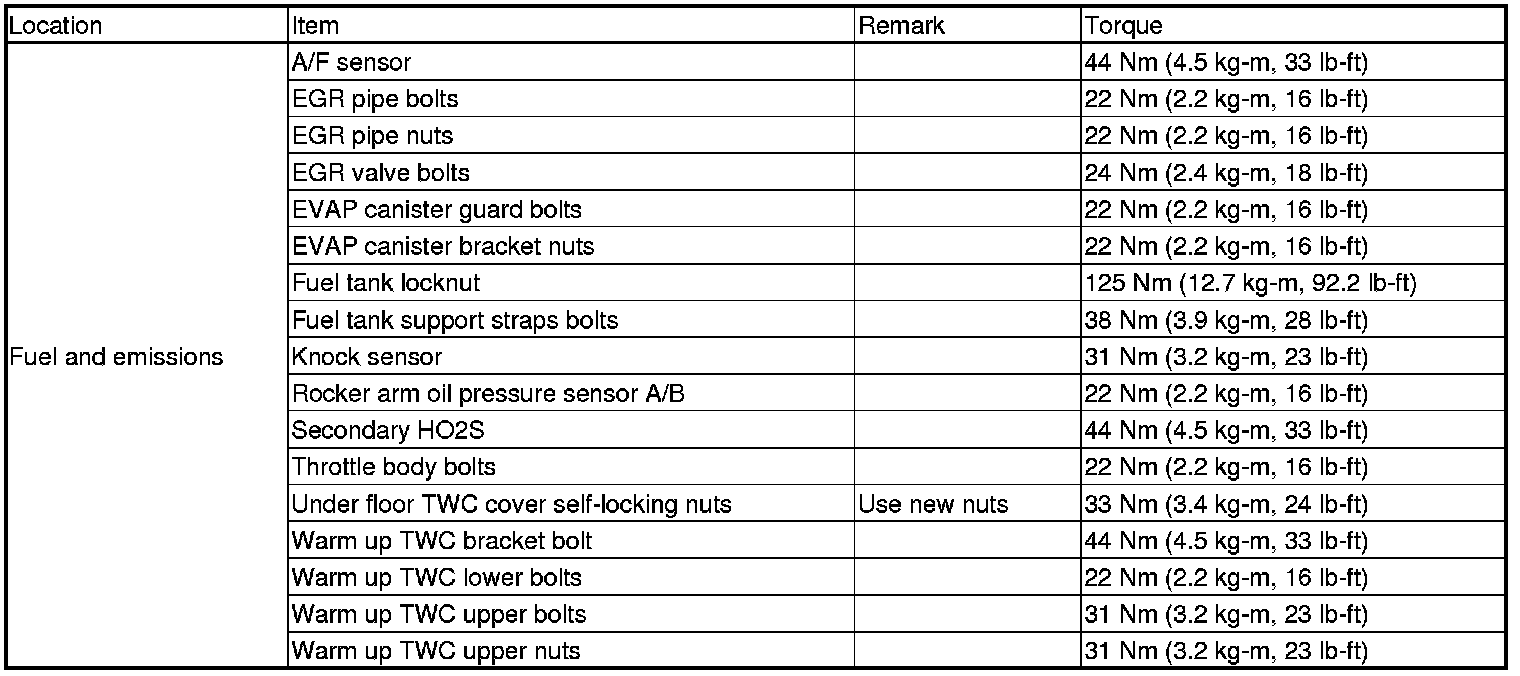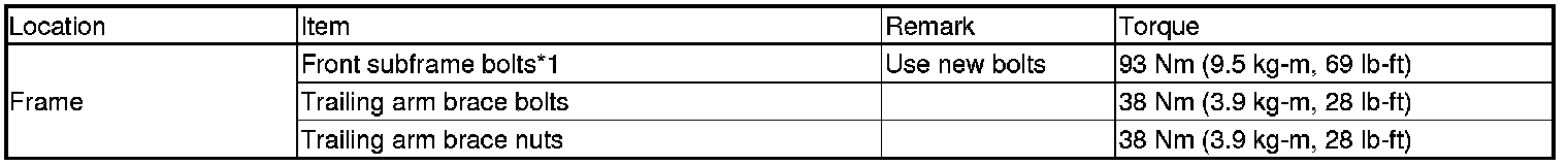 *Refer to the S/M section for the bolts/nuts not indicated here.