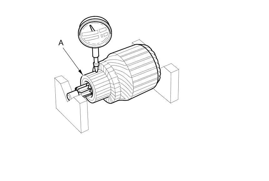 4. Check the commutator (A) diameter with a digital caliper or dial type caliper. If the diameter is below the service limit, replace the armature.