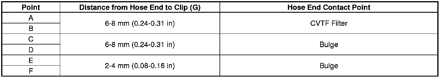 1. Install the CVTF cooler hoses over the CVTF cooler lines with the clips at appropriate points in reference to the following list.