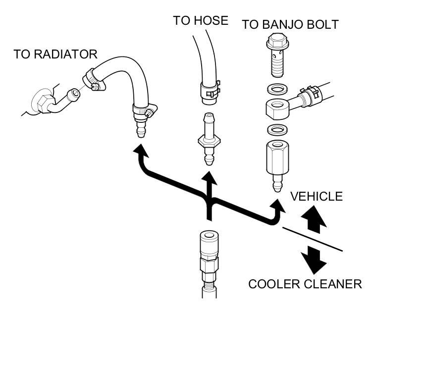 4. Select the appropriate pair of fittings, and attach them to the radiator, to the hoses, or to the banjo bolts for flow through the ATF cooler cleaner.