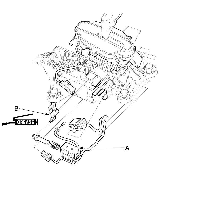 2. Remove the shift lock solenoid assembly (A) Service and Repair.