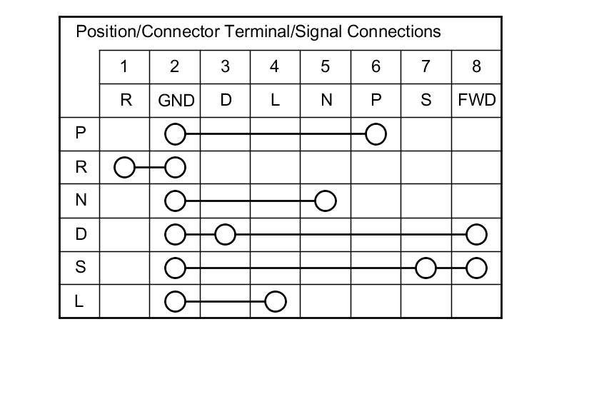 4. The transmission range switch test is completed if the test results are OK. If there is no continuity between any terminals, go to step 5.