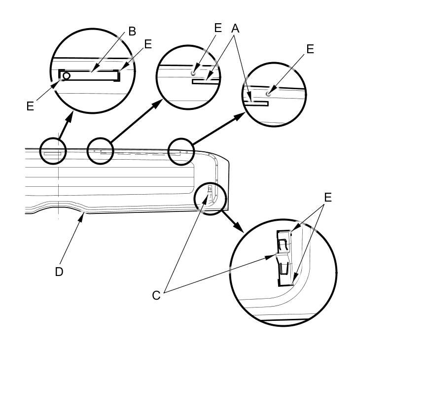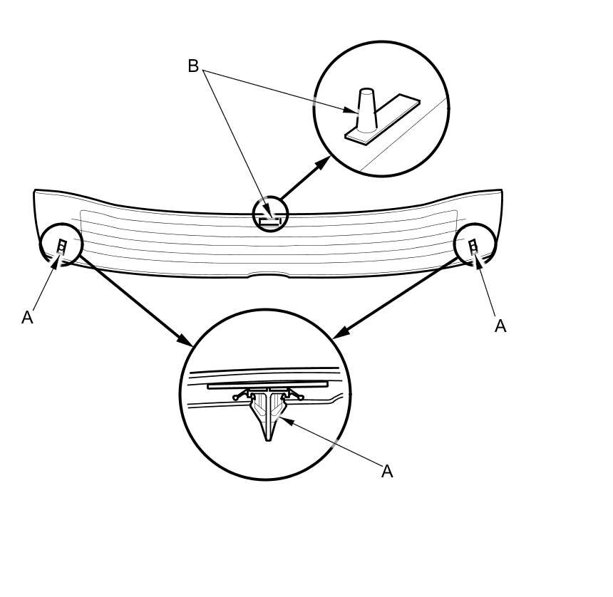 13. If the clips (A) and the fastener (B) are damaged or stress-whitened, replace them with new ones.