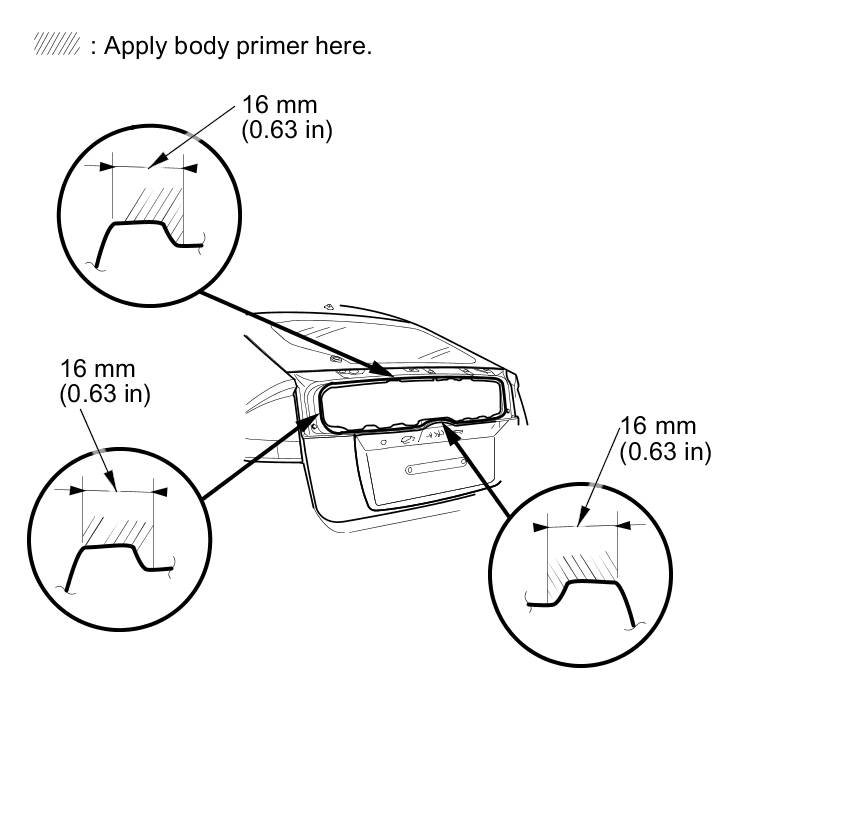 - Never touch the primed surfaces with your hands. If you do, the adhesive may not bond to the lower rear window properly, causing a leak after the lower rear window is installed.