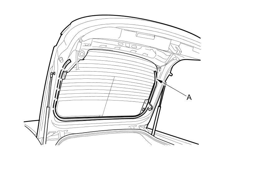 2. Remove the upper seal (A) from the edge of the upper rear window. If necessary, cut the upper seal with a utility knife.