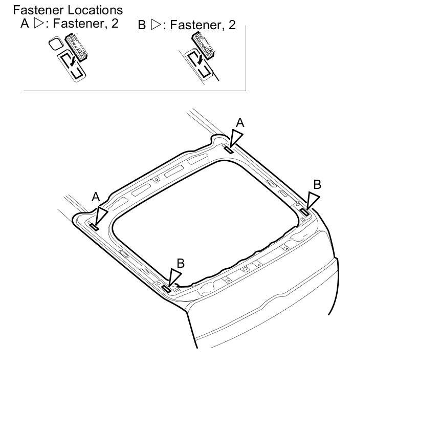 15. Attach the fasteners (A, B) to the hatch as shown.